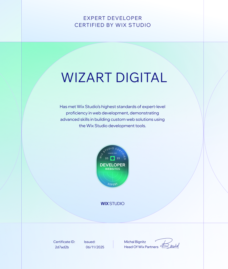 A Wizart Digital é uma agência de marketing digital possui o mais alto nível de Parceria com o WIX.COM (parceiro Lendário) a nível Global, estando presente em projetos espalhados por todo continente Europeu e América Latina. Possui selos de Certificação em Velo Developer e Accessibility, o que reflete o compromisso e competência de nossa empresa para executar os mais complexos projetos na criação de sistemas para empresas e sites.